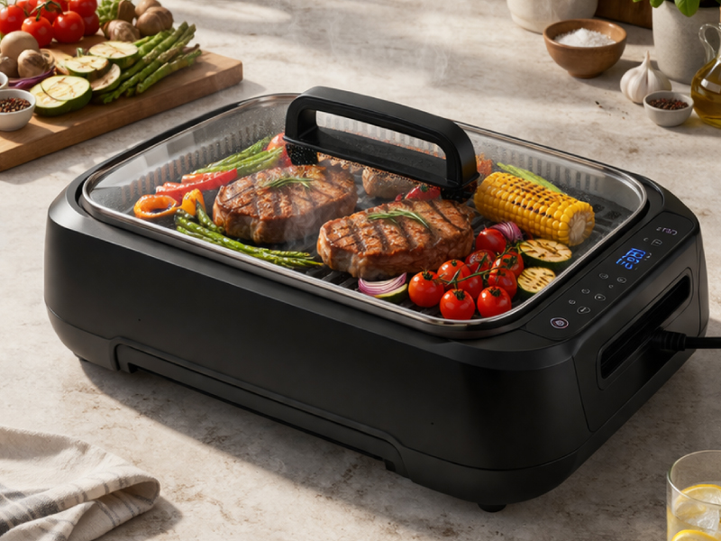 Parrilla eléctrica capaz de eliminar casi el 100% del humo de un asado