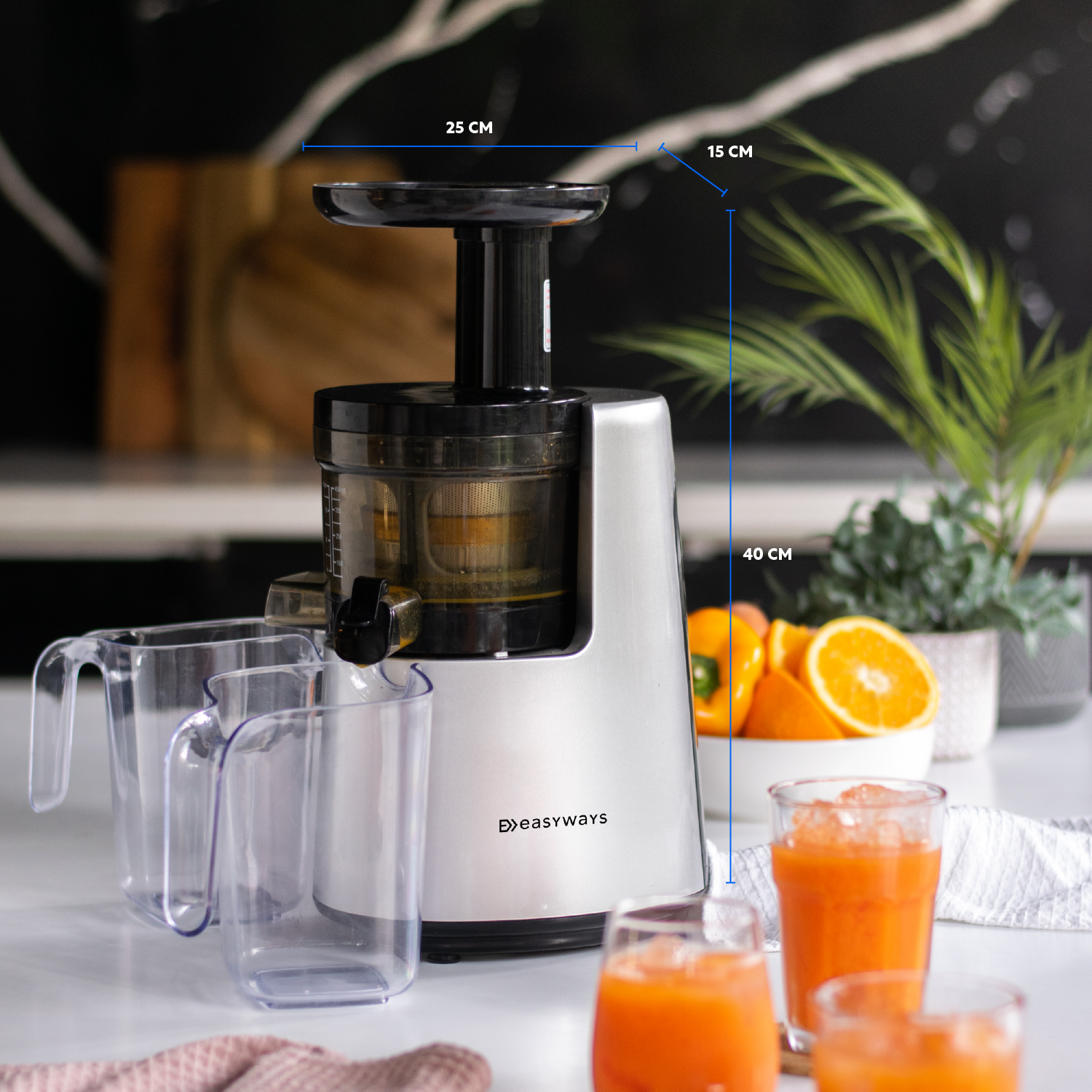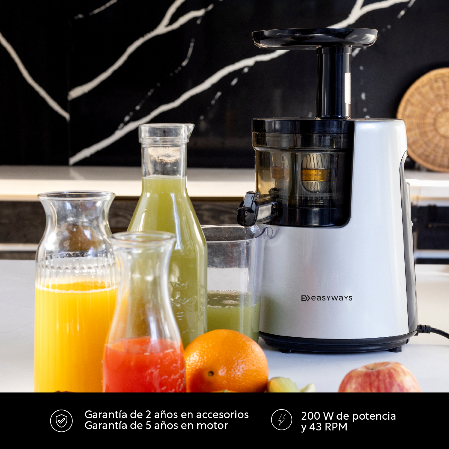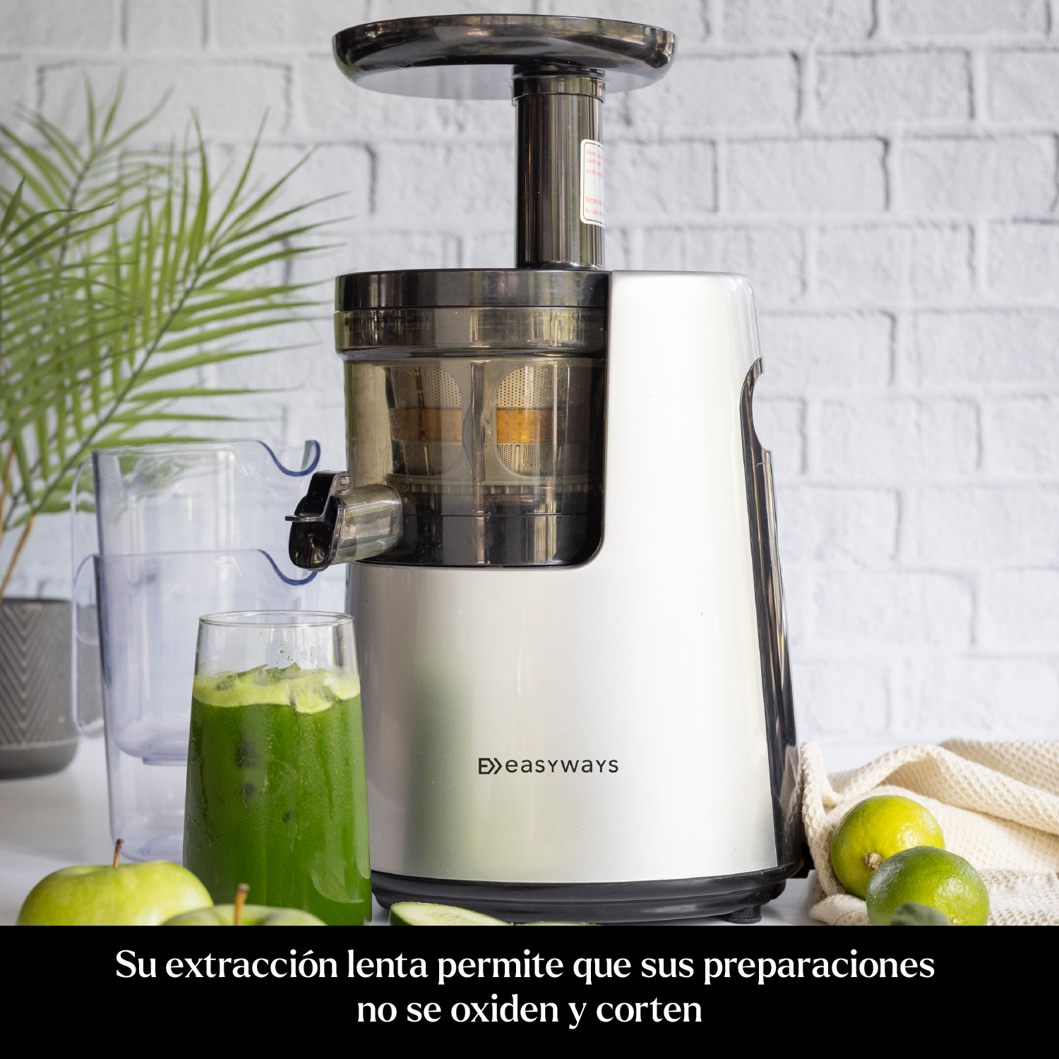 Un Slow Juicer es un prensador de jugos en frío que funciona a bajas revoluciones por minuto, comprimiendo las frutas y verduras gradualmente para evitar que se calienten. Gracias a este proceso se mantienen intactos sus nutrientes sensibles al calor, como las vitaminas A y C, y enzimas vivas. Ésta es una de sus principales diferencias con las licuadoras, que trituran a altas velocidades, con lo que generan fricción y un aumento de temperatura, degradando los nutrientes.