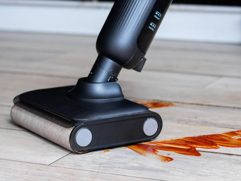 Esta aspiradora trapeadora 2 en 1 aspira y trapea al mismo tiempo, ayudándote a mantener tus pisos impecables en menos pasadas.