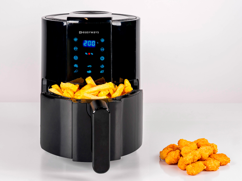 Podrás preparar papas fritas, bizcochos, queques, mini tortas, nuggets, pollo apanado, hamburguesas, alitas de pollo, pescados, vegetales y más.