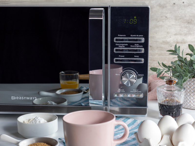 "Potencia y estilo en tu cocina El Microondas EasyWays Max Power 26 L ofrece 1100 W de potencia para un calentamiento rápido y eficiente. Su diseño espejado y moderno lo convierte en el complemento ideal para cualquier cocina."